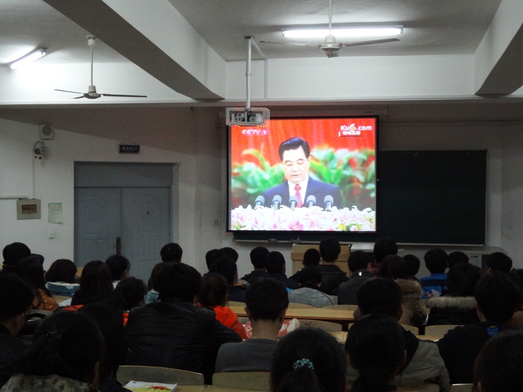 上午,中国共产党第十八次全国代表大会在北京隆重召开。我院组织学生在10教312教课室收看胡锦涛同志在中国共产党第十八次全国代表大会上的报告。