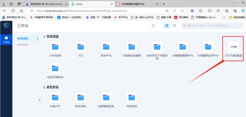 1.登录Web VPN进入工作台后,点击“万方下载(隧道)”图标。