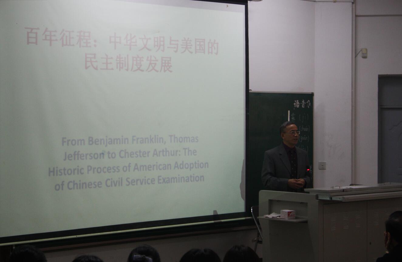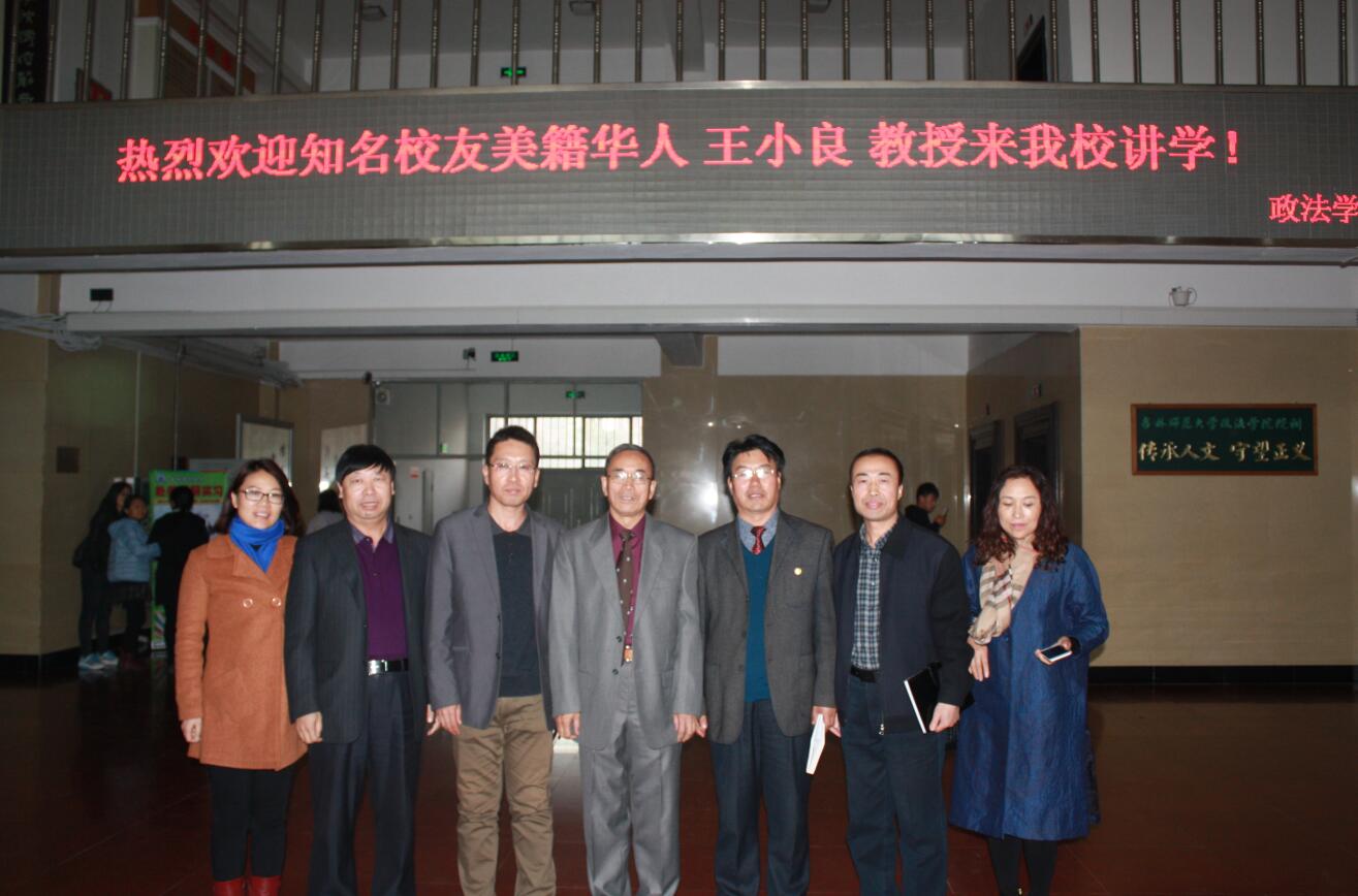 带着对母校发展的关心,带着对母校的感恩之心,王小良博士于2016年10月18日回到母校,在3天的行程中,王小良博士给外国语学院、政法学院师生做了“中华文明与美国民主制度的发展”学术报告,就中华文化对美国建国和民主制度发展的影响,阐发了自己独到的见解,并与外国语学院、政法学院及学校相关部门负责人就“中华文化与世界发展”问题进行了交流。 在校活动期间,校党委书记许才山、校长杨景海、副校长李海波分别与王小良就学校发展、学术交流、学科建设等进行了富有成效的交流,并对校友如何更地发挥在学校发展建设中的重要作用提出了自己的建设性意见。校友办主任兼校友会秘书长张颖全程陪同。