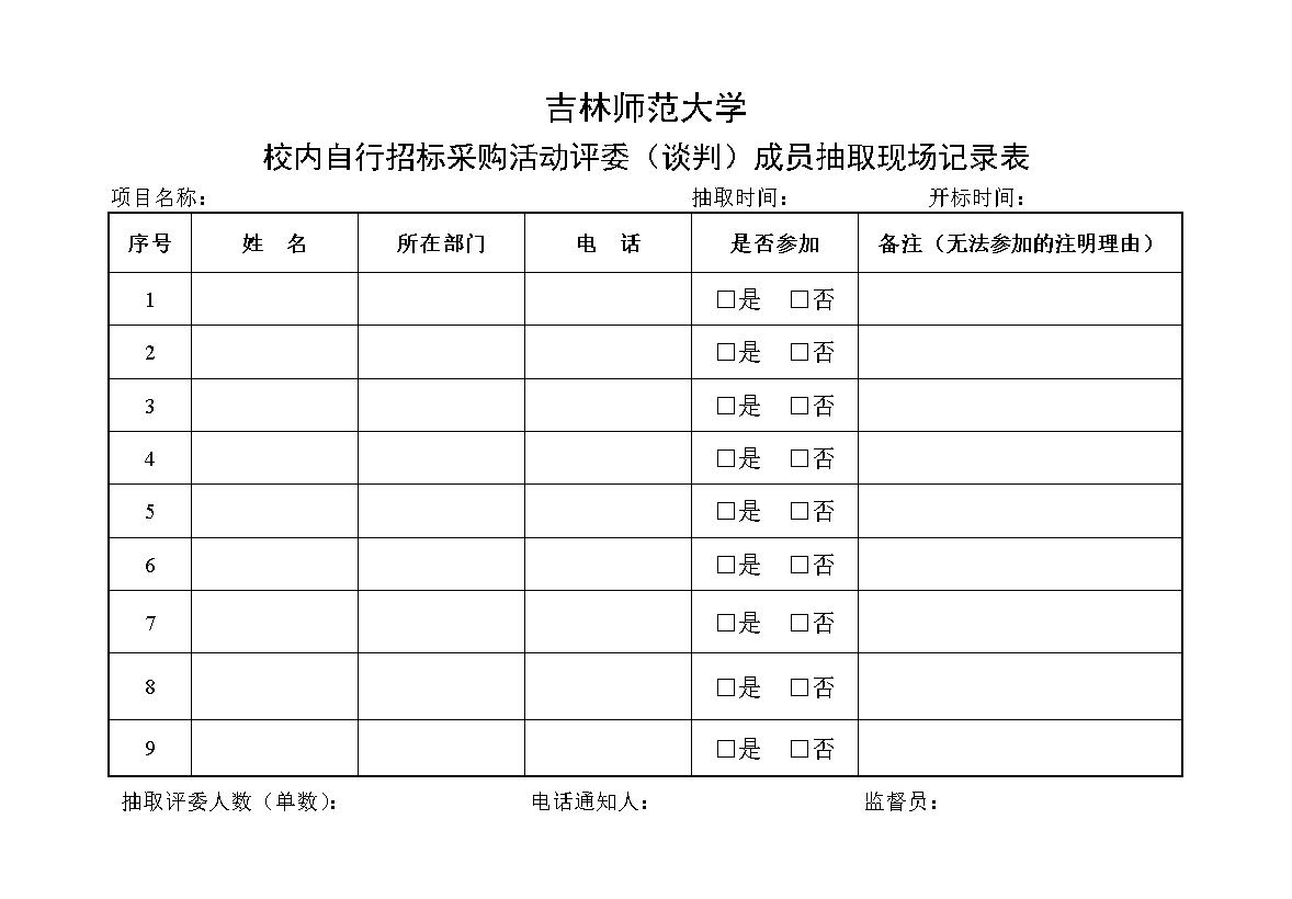 bat365平台官网校内自行招标采购活动评委/谈判成员抽取现场记录表(2021版)