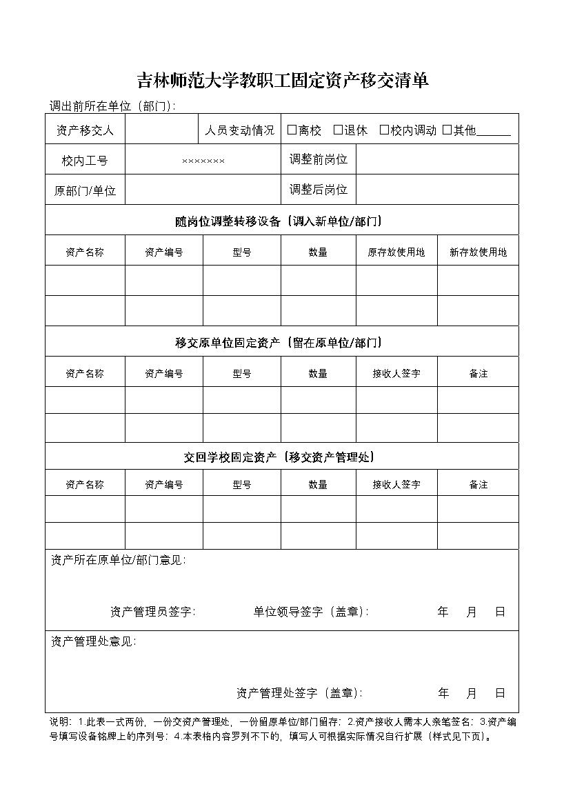 bat365平台官网教职工固定资产移交清单