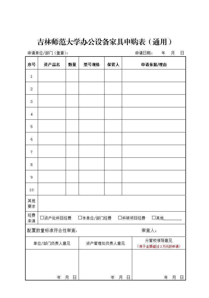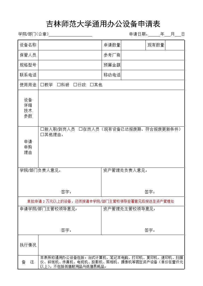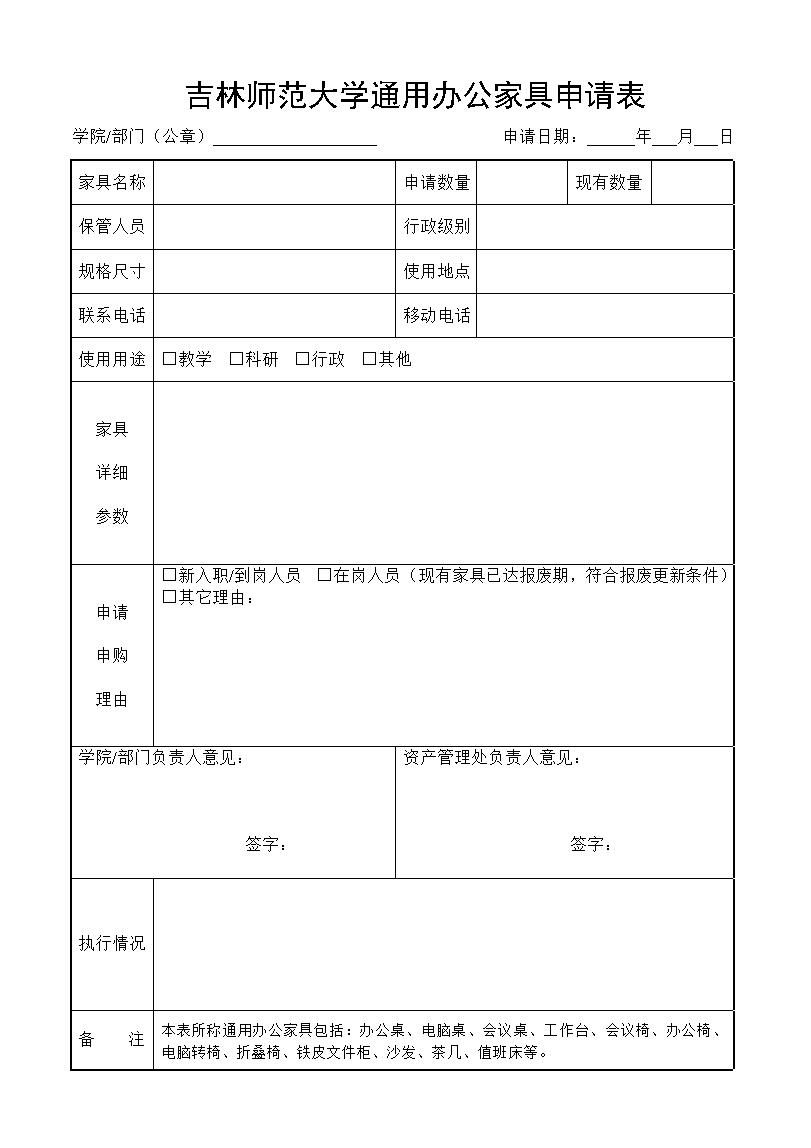 bat365平台官网办公设备家具申请表
